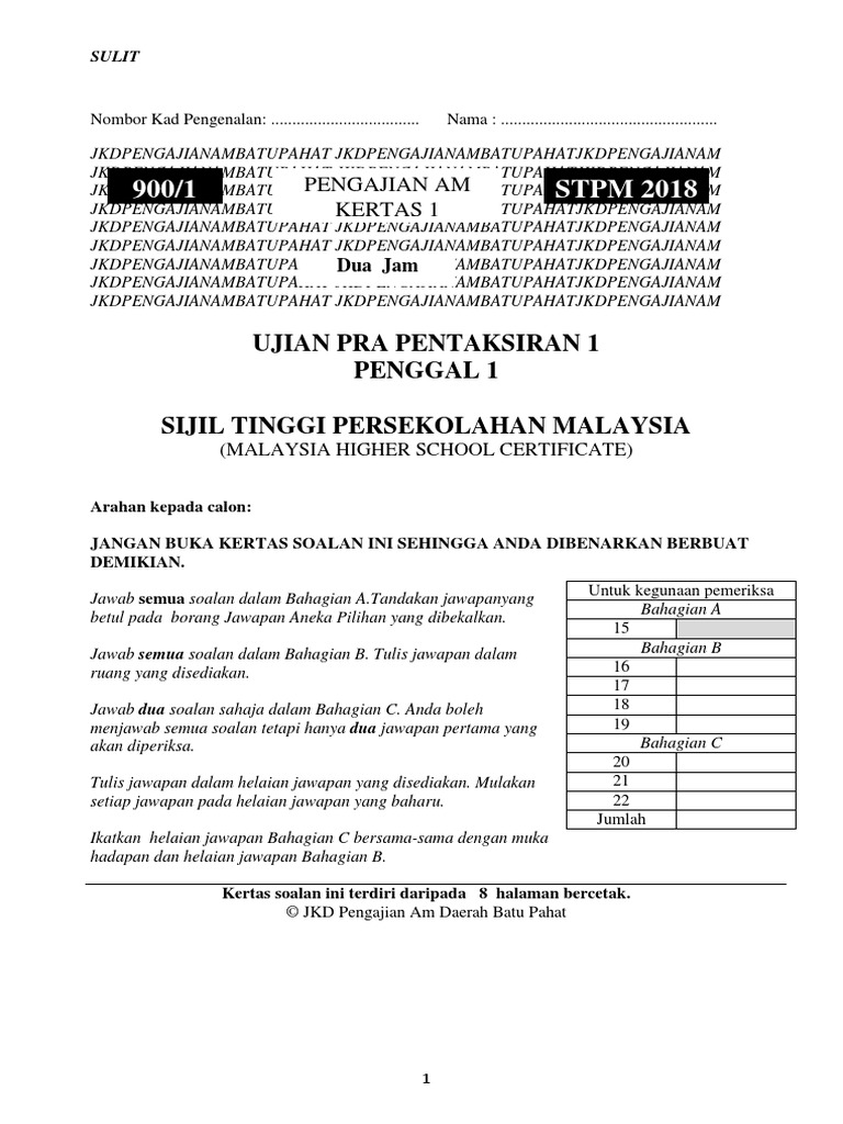 Perincian Pemarkahan Pengajian Am Penggal 2 Pdf