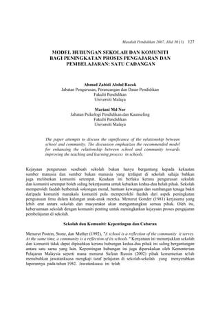 Model Hubungan Sekolah Dan Komuniti Bagi Peningkatan P P