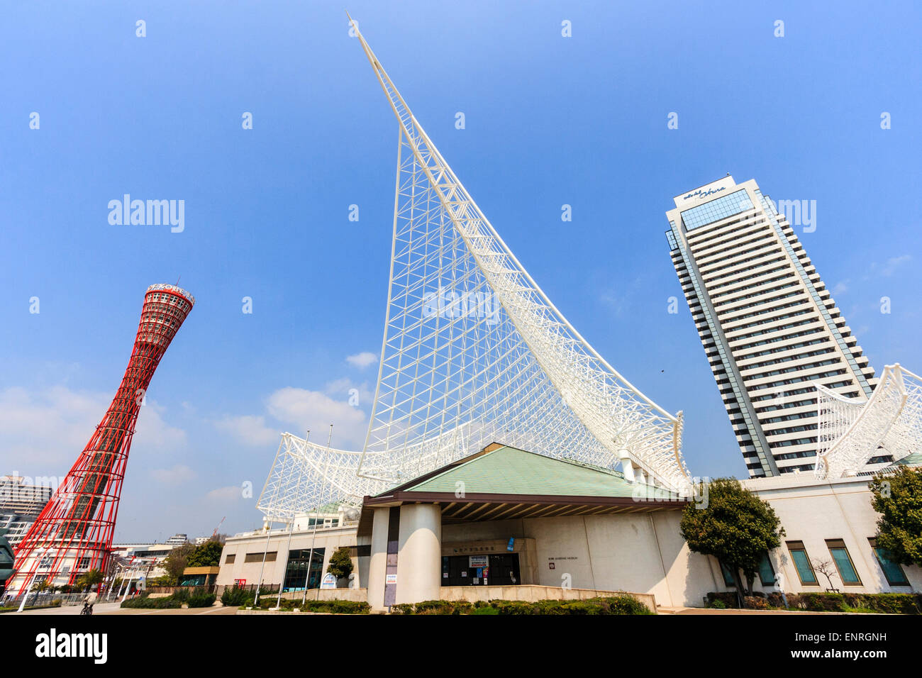 Kobe Famous Waterfront View Of The Red Kobe Port Tower The Okura Hotel High Rise And The White Metal Frame Work Structure Of The Maritime Museum Stock Photo Alamy